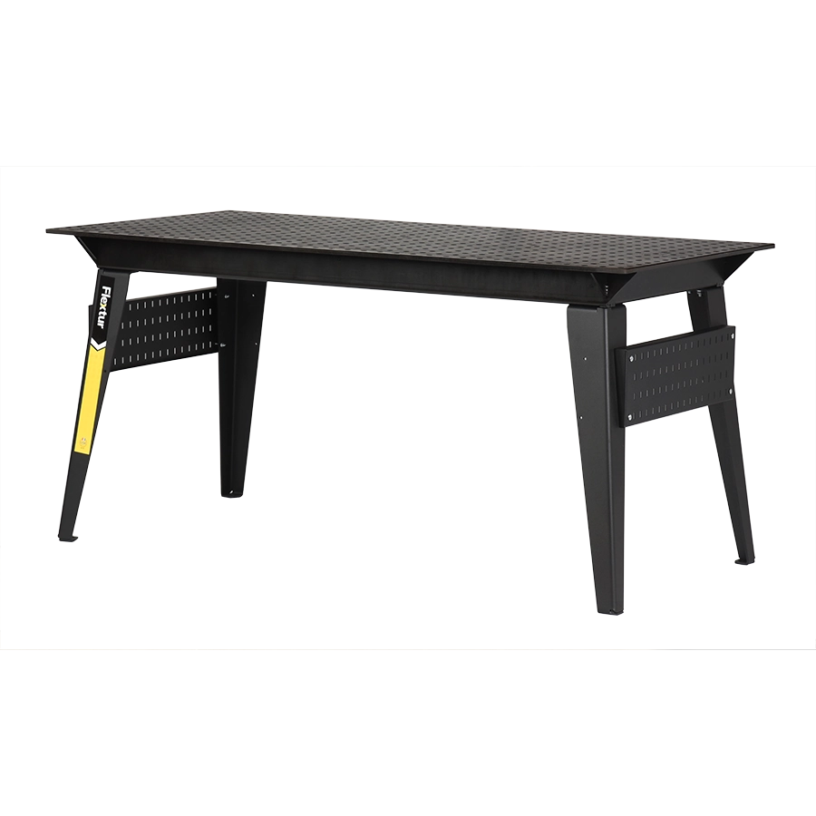 Flextur™ Nitride Welding Table 36″L x 72″W x 35″H, 1/2″ black top with 1/4″ x 2″ struts and a heavy powder-coated matte black base giving it a 2,000lb weight capacity. Surface flatness is +/- .015″ over 4 square feet. The dual-layer protection of nitride & black oxide is a powerful combination. Both harden and prevent corrosion, extending the life of your table – while maintaining flatness and structural integrity. Ideal for smaller jobs or in addition to other Flextur Welding Tables. The dual-layer protection of nitride & black oxide is a powerful combination. Both harden and prevent corrosion, extending the life of your table – while maintaining flatness and structural integrity. Use with Flextur Welding Fixturing Kits and Accessories. Comes with Flextur’s industrial 14-gauge steel / metal pegboard / tool board panels that can be used with Flextur accessories. Change over is easy and quick with a 2″ grid pattern of 16mm locator pin holes. Inexperienced Welders can easily make an accurate setup and become productive in minutes with this Welding Table. Onboard metal tool board panels keep tools organized and within easy reach. A complete line of Flextur accessories, ordered separately, are available to outfit your table. Base requires some assembly but all welding table tops ship assembled. American Made in Dalton, Ohio U.S.A.